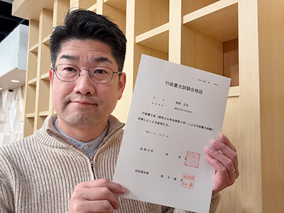 憲法や民法、行政法に商法・会社法など、様々な法律の知識が問われるこの試験。ある日インターネットで、行政書士は「まちの法律家」であるという言葉を目にして強い興味を持ったのと、試験科目に政治・経済・社会などの「基礎知識」、つまりニュースで扱う知識も問われることを知り受験を決意しました。
