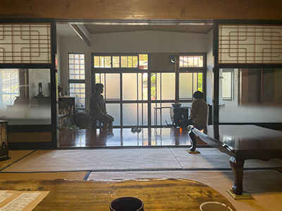 間口の広い玄関の真正面にある居間の建具は、漆塗りだったり、型板ガラスや富士山の風景のすりガラスが使われていたりして味がある。玄関の薪(まき)ストーブの熱が、建物全体を暖かく包み込む。なぜかはわからないが、時間がとけてなくなっていくようで、ただただぼんやりできる空気感があり、やさしさと豊かさが体に染み込んでくる。