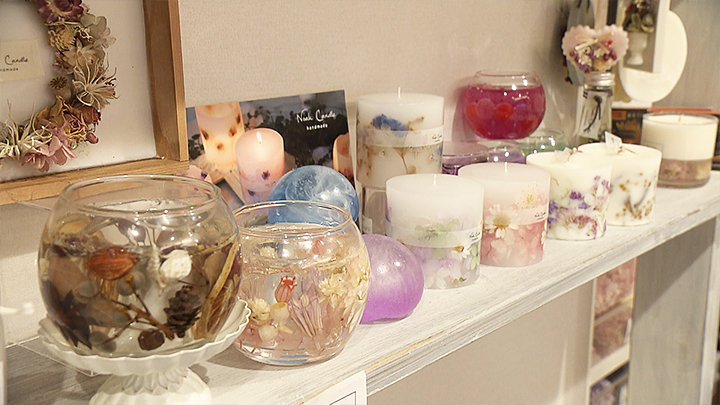 ドライフラワーや溶かしたロウで作るボタニカルキャンドルなどの製作体験ができるノアキャンドル。 1回のレッスンからじっくり学べるコースレッスンも行っています。 世界に一つだけの自分だけのキャンドル、 火をつけるのがもったいない!と飾っておく方も多いそうです。 揺らめく炎のやさしい灯りに癒されます。