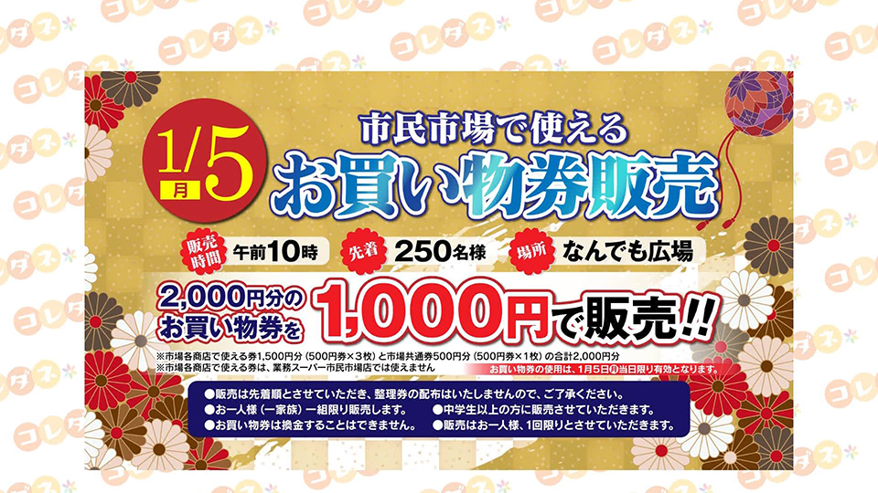 お得なお買物券の販売もあるので年始は秋田市民市場へ。
