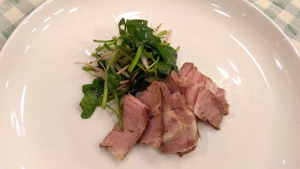 | 作り方 | [1] 豚肉は塩コショウして常温に戻す。(30分~1時間) [2] 鍋に漬け汁の材料を入れ温めておく。別の鍋(豚肉が入る大きさ)にお湯を沸かしておく。 [3] フライパンで豚肉の表面に焼き色を付ける。 [4] 耐熱のポリ袋に漬け汁と豚肉を入れ、空気を抜いて閉じる。袋ごとお湯の中に入れ、中火で4~6分(肉の大きさで調整)、火を止めてそのまま冷めるまで置く。 |