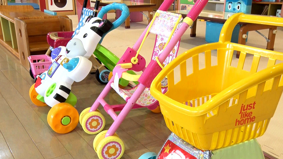「はちパル」の中にあり、たくさんの遊具やおもちゃが並んでいます。赤ちゃんにとっても家族にとっても居心地が良い空間です。