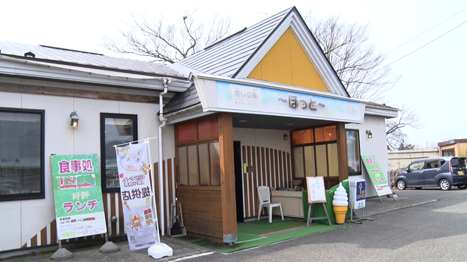 国道7号沿いにある憩いの場。家庭的な味わいで温かい雰囲気の空間は、まさに「ほっと」する場所です。