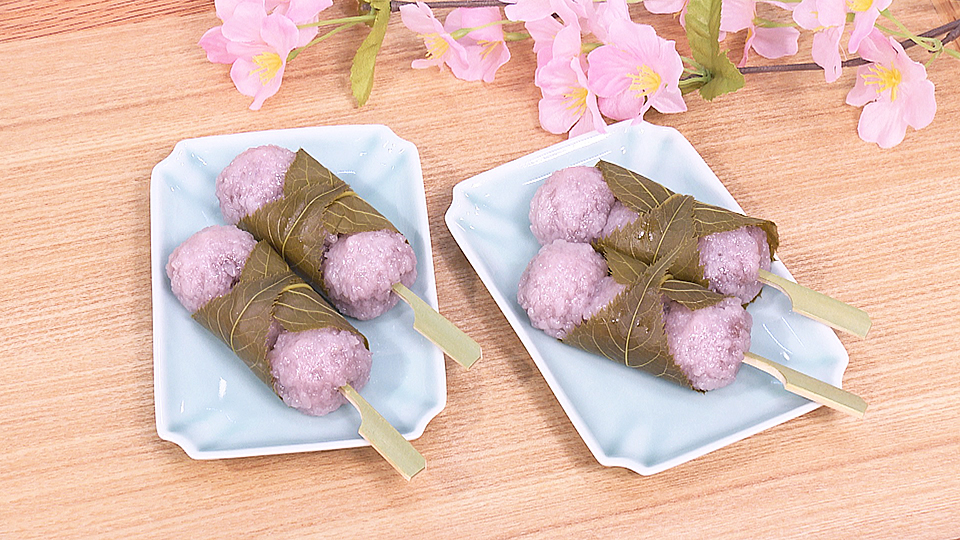 お団子になった桜もちはこしあんが入ったもっちり食感で桜の葉の塩気もアクセントになっています。