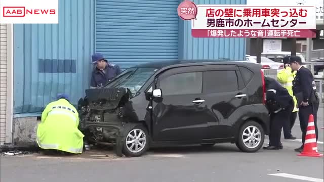 27日午後、秋田県男鹿市のホームセンターに乗用車が突っ込み店の壁に衝突しました。この事故で、運転していた80代とみられる男性が意識のない状態で病院に運ばれましたが死亡しました。店の客にけがはありませんでした。