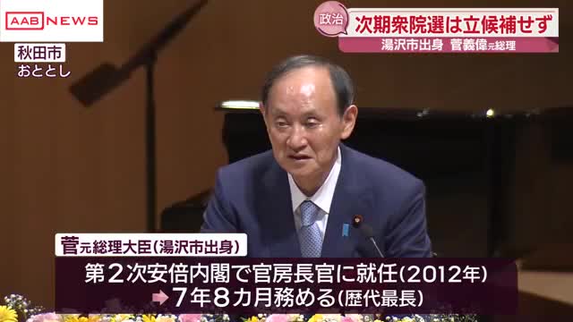 湯沢市出身の菅義偉元総理が次の衆院選に立候補しない意向を固めました。菅さんは湯沢市出身で、2012年の第2次安倍内閣の発足に伴い、官房長官に就任し安倍元総理の最側近として歴代最長の7年8カ月にわたって支えました。2020年、総理大臣に就任すると、新…